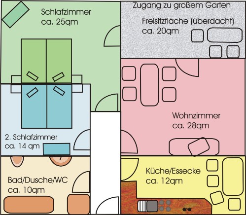 Wohnzimmer mit Gartenzugang (incl. 1 Bett und 1 Schlafcouch)